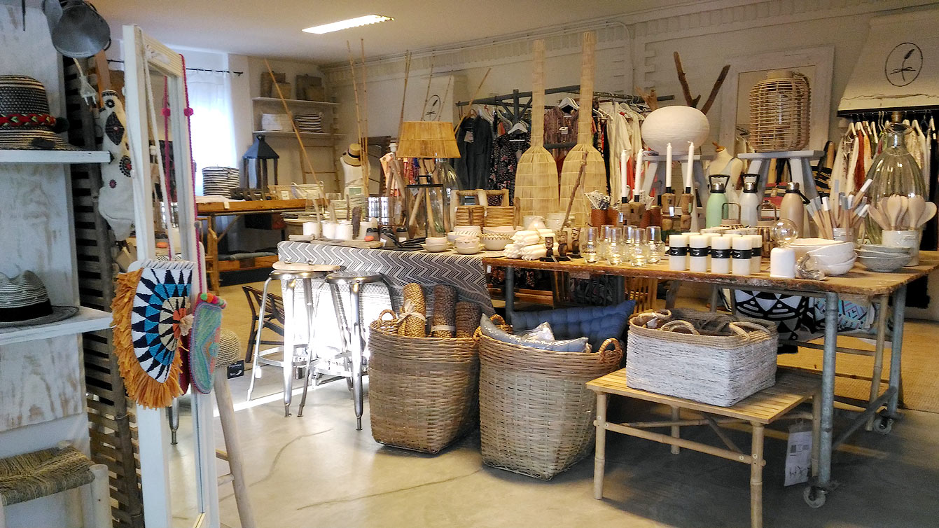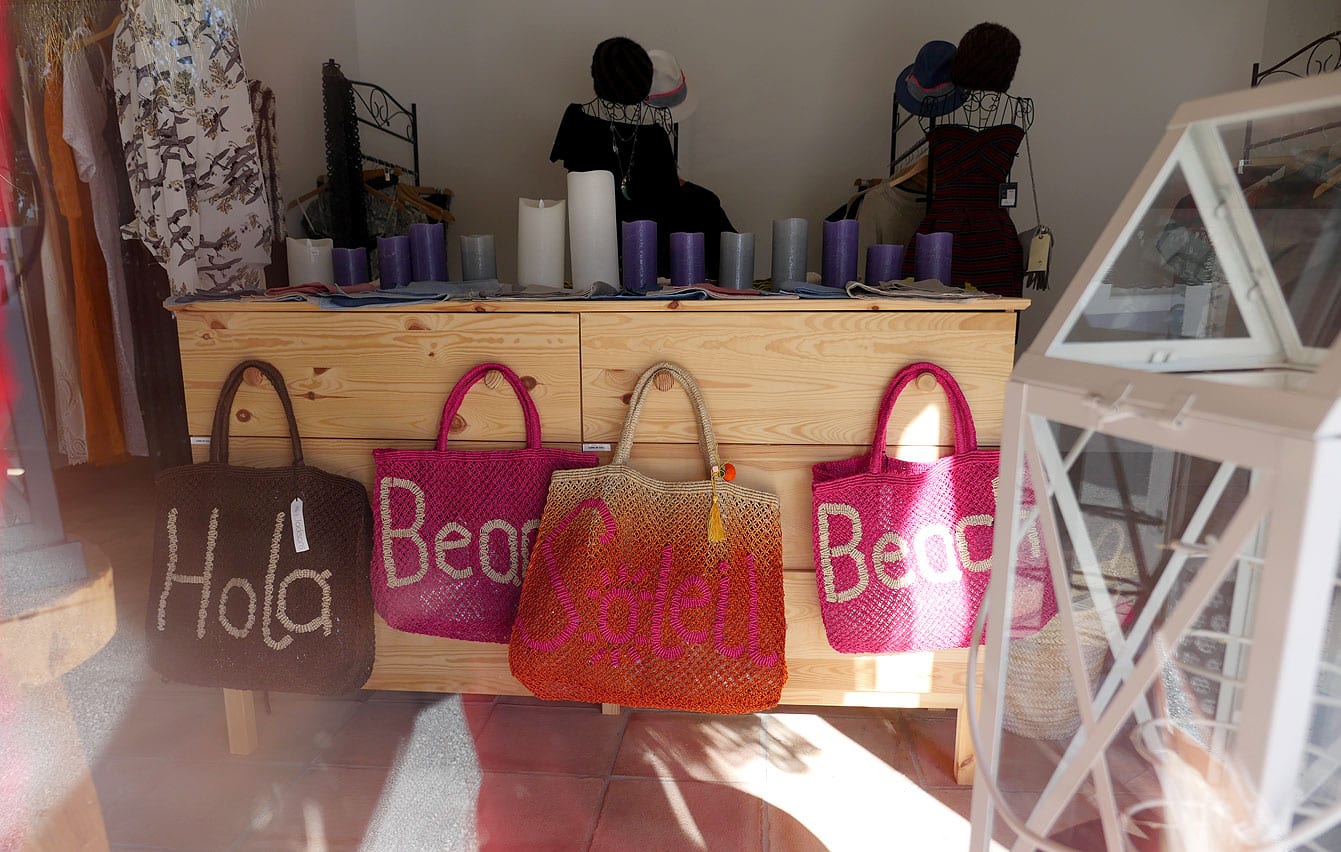 Mais à côté des bikinis, robes, écharpes de coton et accessoires d’été, vous trouverez aussi des coussins, sacs en osier fais à la main, sandales, serviettes de bain etc.